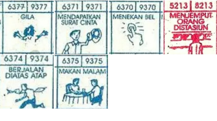 | Rumus Angka Mati berdasarkan kepala harian | 07 08 09 10 19 20 21 27 28 31 38 39 40 41 42 43 48 49 50 51 52 53 54 59 60 61 62 63 65 71 73 74 76 85 86 87 96 97 98 |