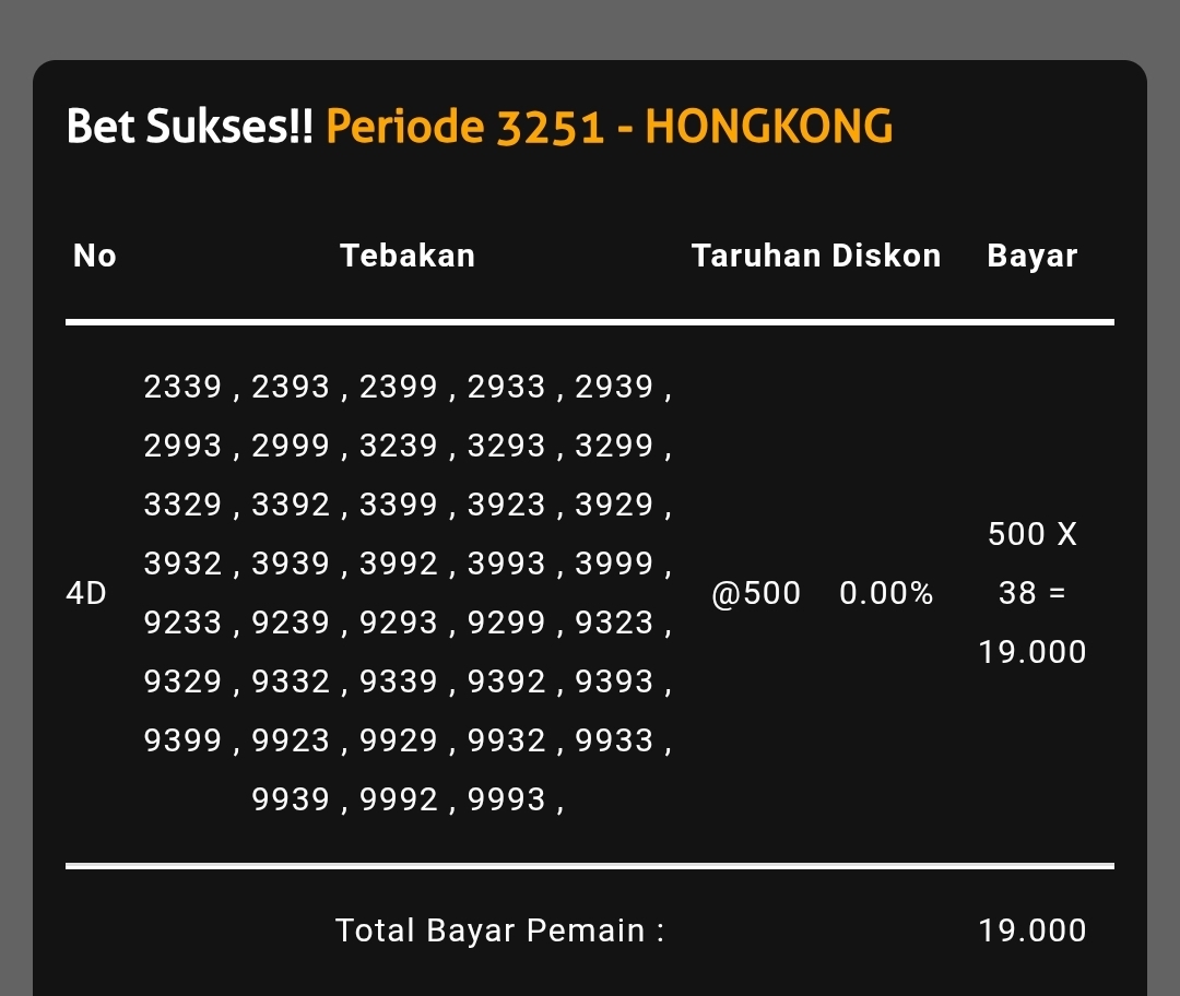 Prediksi Hongkong Lotto Rabu, 24-09-2025 Merupakan Prediksi Otomatis yang menggabungkan Metode Kalender Togel Dengan LN Generator yang akurasi prediksinya sudah kita ketahui bersama. Jadi harap Maklum Jika kadang meleset Prediksi Hongkong Lotto kita. Jadikan ini sebagai perbandingan saja dan tetap Utamakan karya sendiri