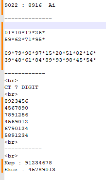 | Rumus Kontrol 4 berdasarkan kepala harian | 1456890 2345789 |