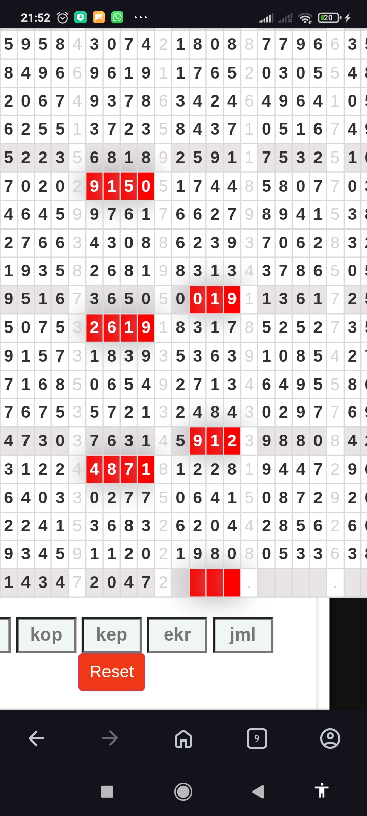 Rumus Kontrol 4 berdasarkan kepala harian | 3457890 1234678 |