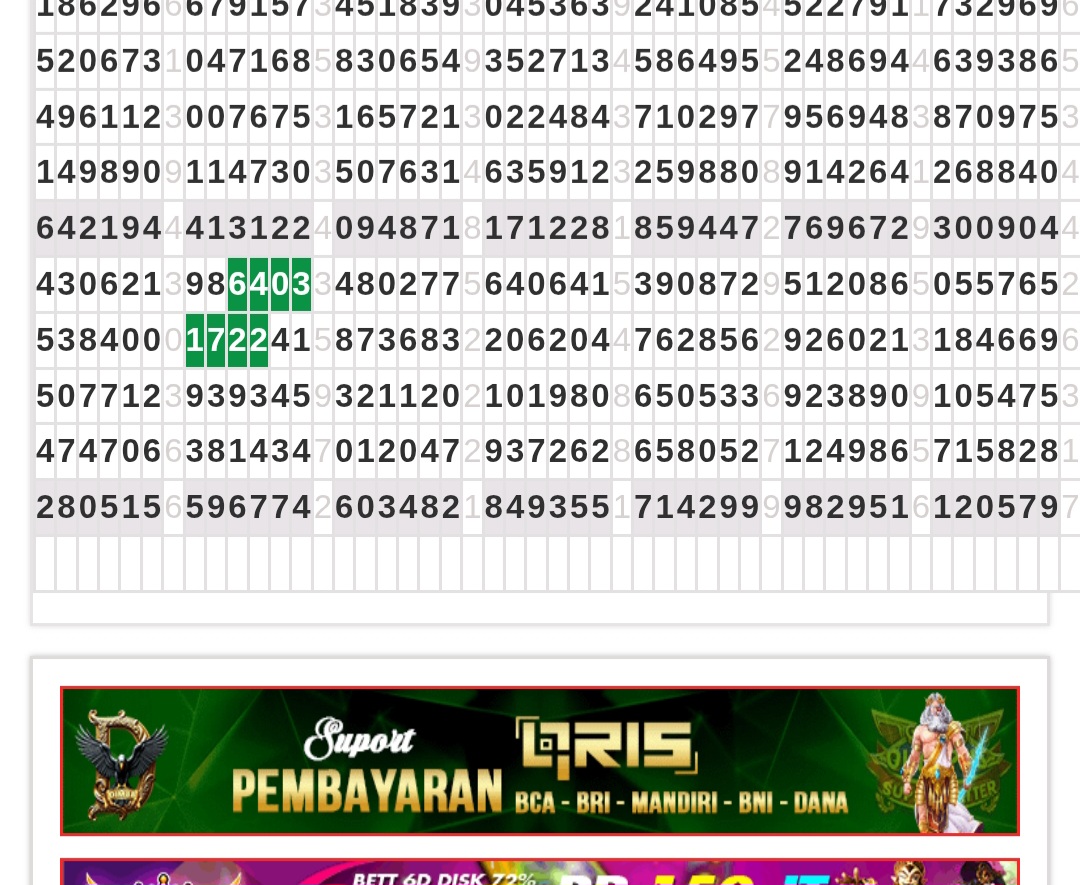 | Rumus Angka Mati berdasarkan kepala harian | 07 08 09 10 18 19 20 21 29 31 32 40 42 43 49 50 51 53 60 61 62 63 64 65 71 72 73 74 75 76 82 83 84 85 87 93 95 96 98 |