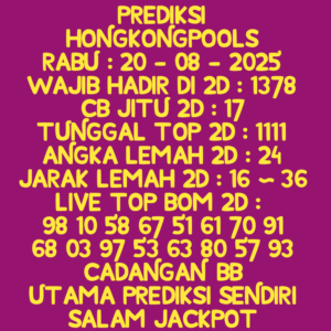 Hongkong Pools, Rabu – 20 Agustus 2025