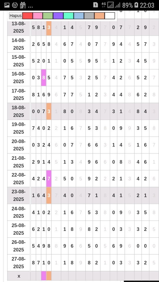 | Rumus Angka Mati berdasarkan kepala harian | 04 06 07 09 10 18 19 20 21 29 30 31 32 42 43 50 51 53 54 61 62 64 71 72 73 74 75 76 82 83 84 85 86 87 93 94 95 96 98 |