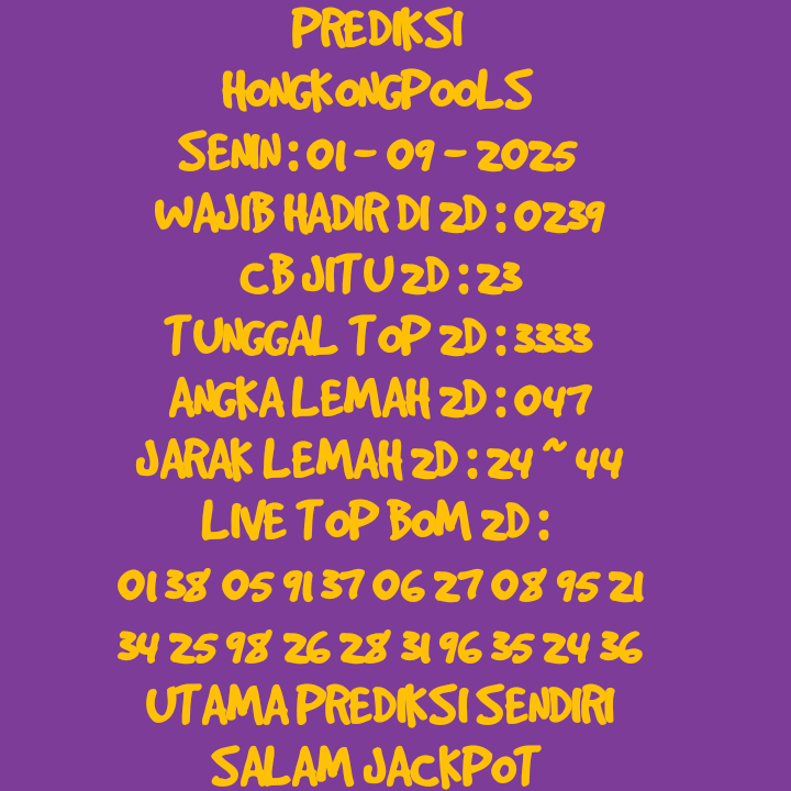 Prediksi HK Rabu, 22-10-2025 Merupakan Prediksi Otomatis yang menggabungkan Metode Kalender Togel Dengan LN Generator yang akurasi prediksinya sudah kita ketahui bersama. Jadi harap Maklum Jika kadang meleset Prediksi HK kita. Jadikan ini sebagai perbandingan saja dan tetap Utamakan karya sendiri