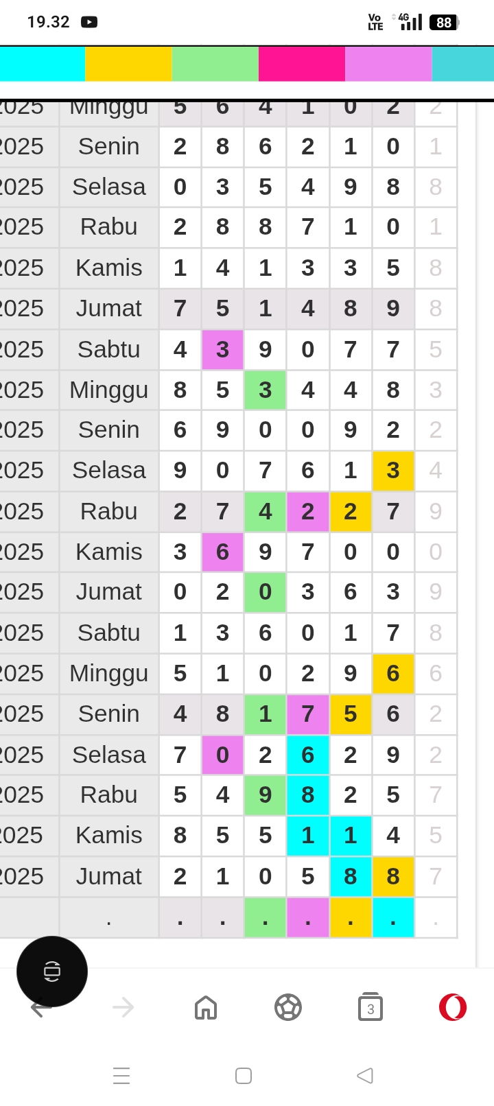 Rumus Angka Mati berdasarkan kepala harian | 07 08 09 10 18 19 20 21 31 32 38 39 40 42 49 50 51 52 53 54 59 60 61 62 63 64 65 71 72 73 74 76 82 84 85 87 96 97 98 |