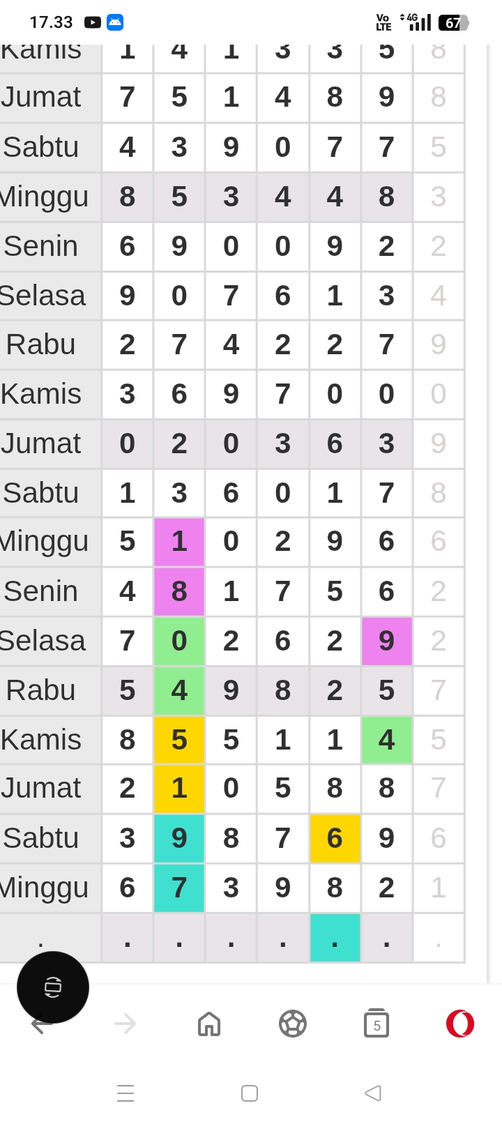 | Rumus Angka Mati berdasarkan kepala harian | 07 08 09 10 18 19 20 21 31 32 38 39 40 42 49 50 51 52 53 54 59 60 61 62 63 64 65 71 72 73 74 76 82 84 85 87 96 97 98 |