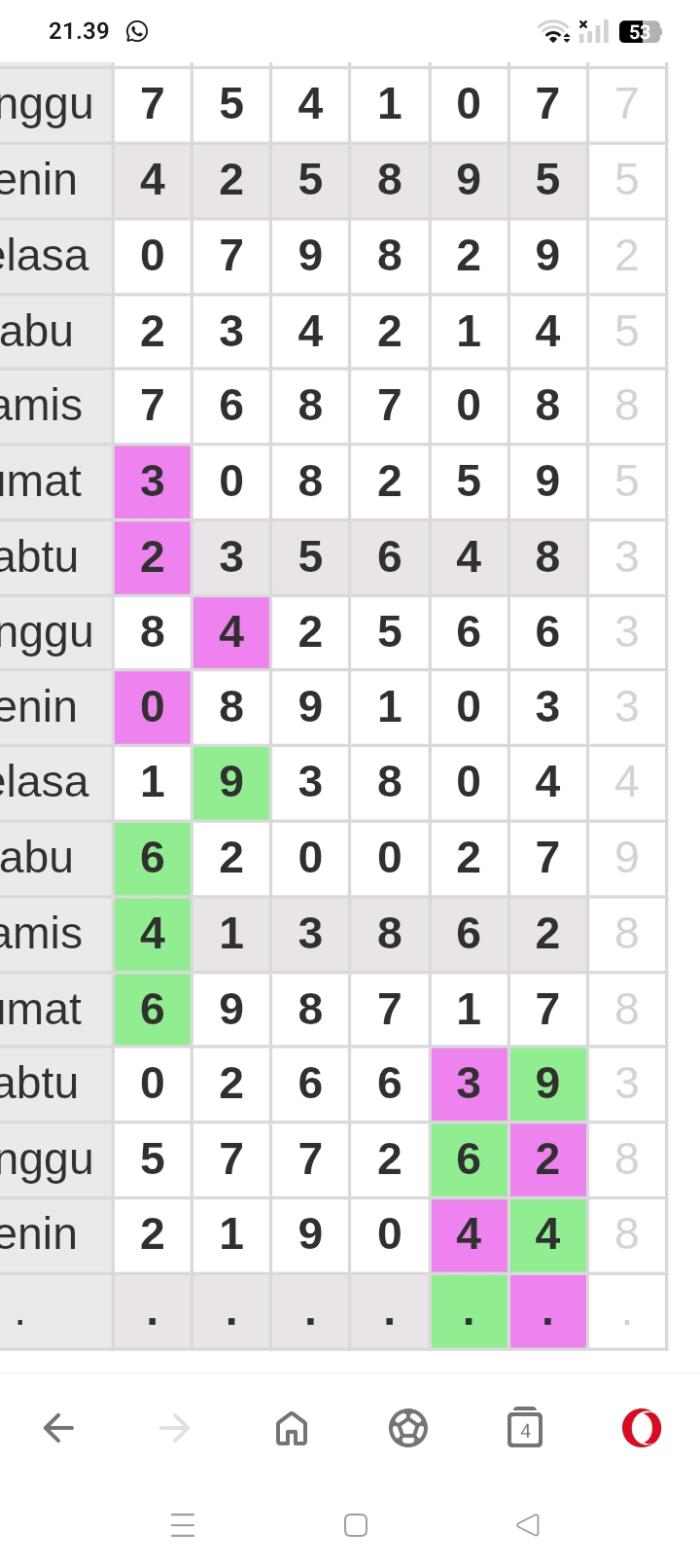 | Rumus Kontrol 4 berdasarkan kepala harian | 2345890 1236789 |