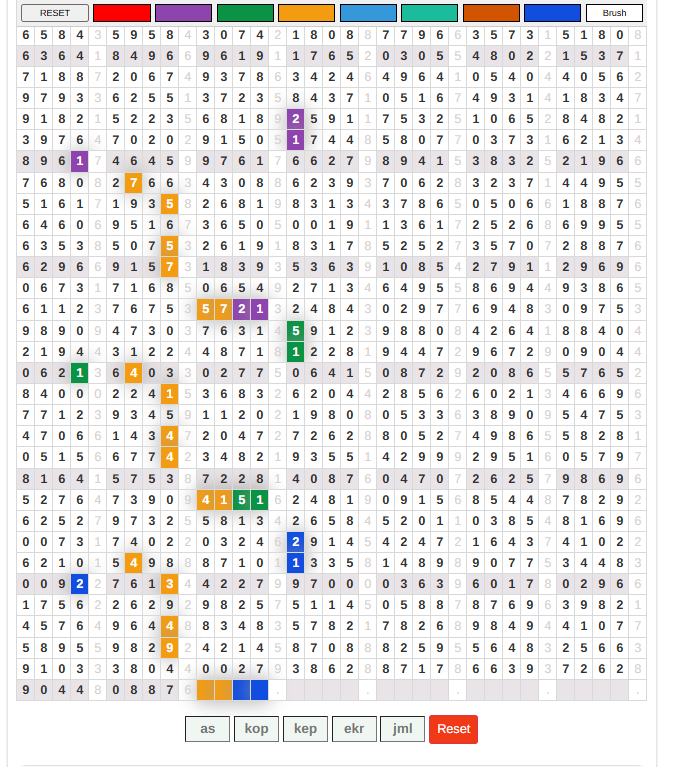 | Rumus Angka Mati berdasarkan kepala harian | 04 05 06 07 08 09 10 15 16 17 18 19 21 26 27 28 29 30 32 37 39 41 42 43 52 53 54 63 64 65 75 76 83 84 86 87 94 95 97 |