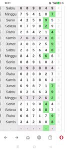 Rumus Angka Mati berdasarkan kepala harian | 07 08 09 10 18 19 20 21 31 32 38 39 40 42 49 50 51 52 53 54 59 60 61 62 63 64 65 71 72 73 74 76 82 84 85 87 96 97 98 |