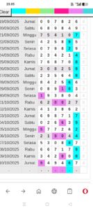 Prediksi Ini Berubah secara otomatis sesuai hari dan result pasaran masing-masing. Untuk melihat prediksi sebelumnya klik tombol nomor hitam diatas