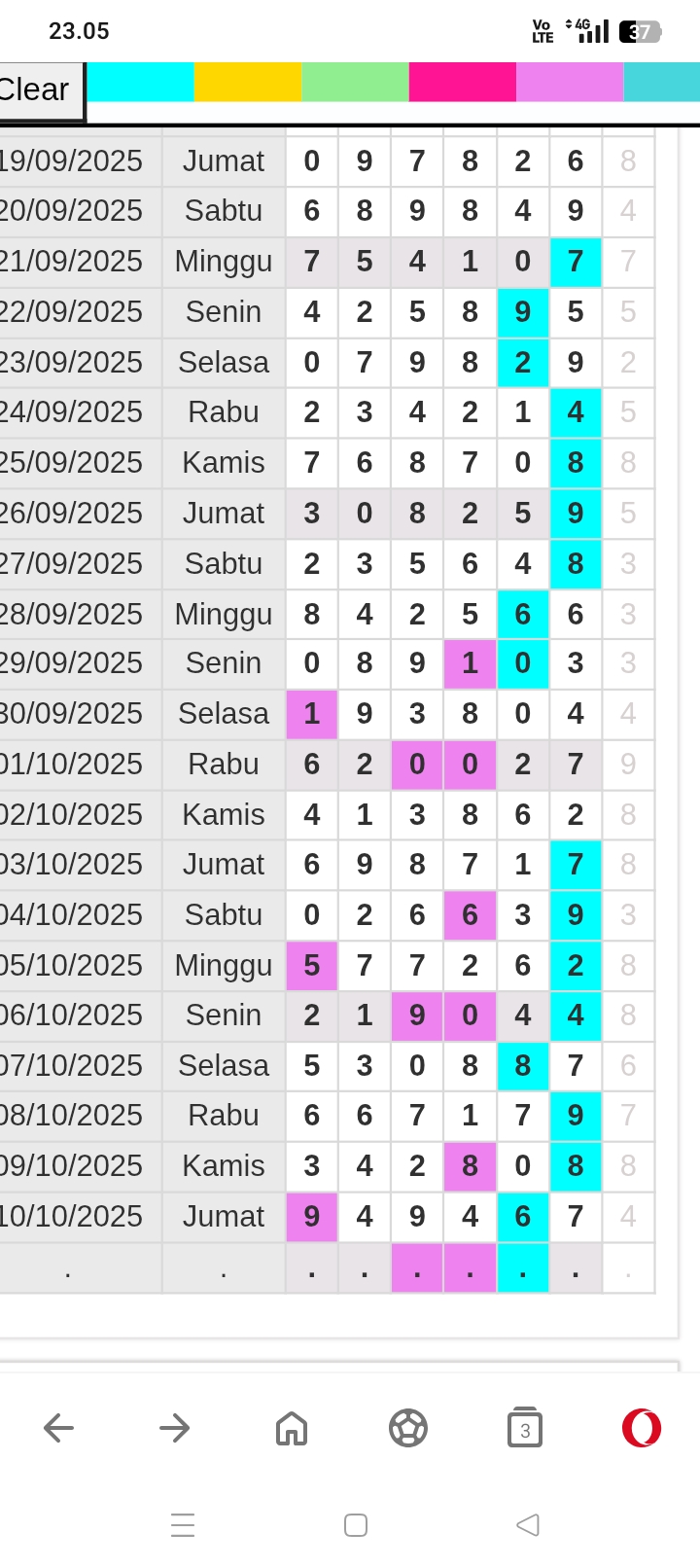 Rumus Angka Mati berdasarkan kepala harian | 07 08 09 10 18 19 20 21 31 32 38 39 40 42 49 50 51 52 53 54 59 60 61 62 63 64 65 71 72 73 74 76 82 84 85 87 96 97 98 |