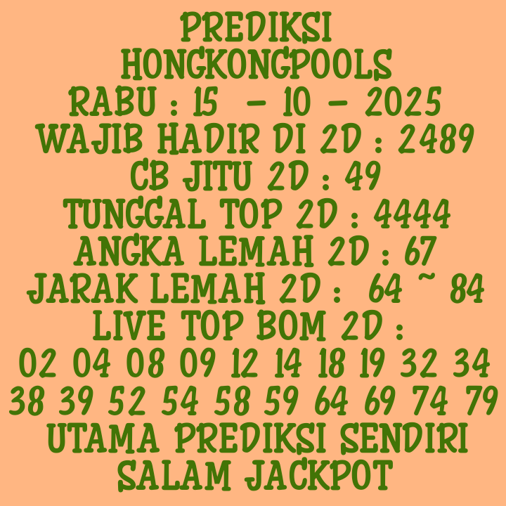 Prediksi Ini Berubah secara otomatis sesuai hari dan result pasaran masing-masing. Untuk melihat prediksi sebelumnya klik tombol nomor hitam diatas