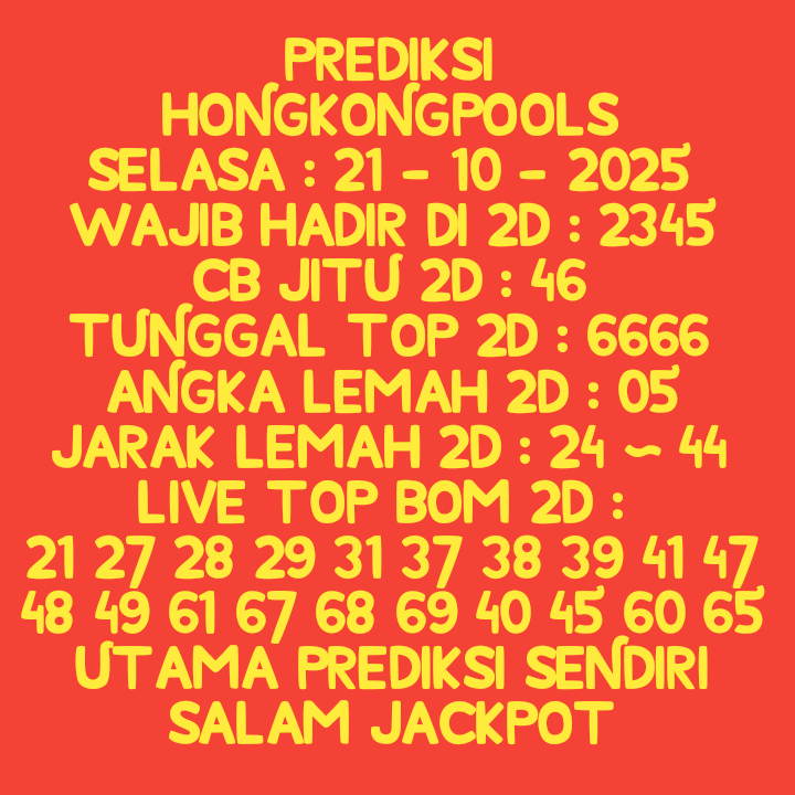 Prediksi HK Rabu, 22-10-2025 Merupakan Prediksi Otomatis yang menggabungkan Metode Kalender Togel Dengan LN Generator yang akurasi prediksinya sudah kita ketahui bersama. Jadi harap Maklum Jika kadang meleset Prediksi HK kita. Jadikan ini sebagai perbandingan saja dan tetap Utamakan karya sendiri