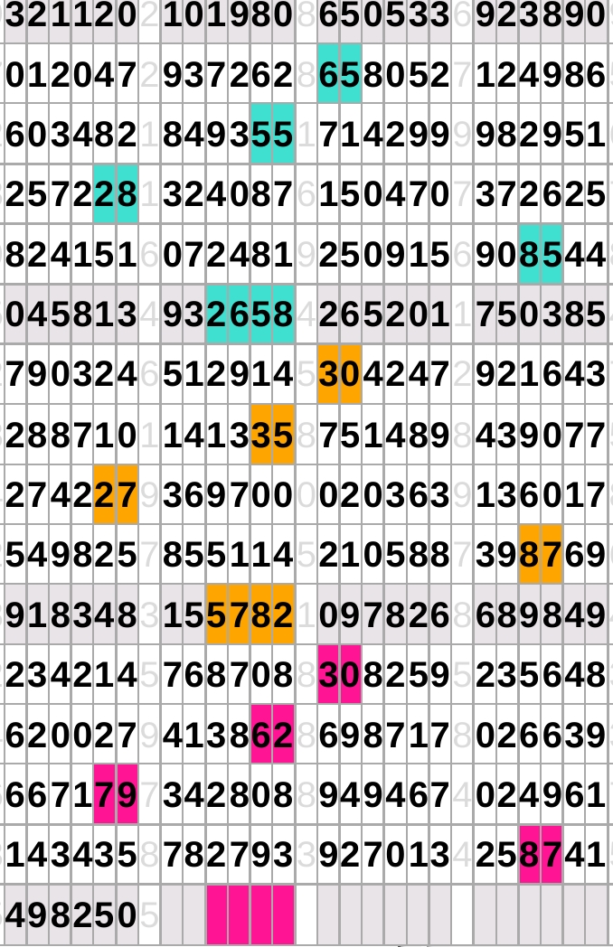 Rumus Angka Mati berdasarkan kepala harian | 07 08 09 10 18 19 20 21 31 32 38 39 40 42 49 50 51 52 53 54 59 60 61 62 63 64 65 71 72 73 74 76 82 84 85 87 96 97 98 |
