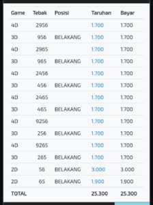 | Rumus Kontrol 2 berdasarkan Ekor harian | 1354802 2345689 9357048 |