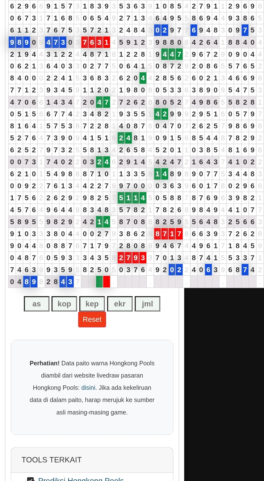 | Rumus Angka Mati berdasarkan kepala harian | 04 05 06 07 08 09 10 15 16 17 18 21 26 28 29 30 31 32 41 42 43 52 53 54 64 65 72 73 75 76 83 84 86 93 94 95 96 97 98 |