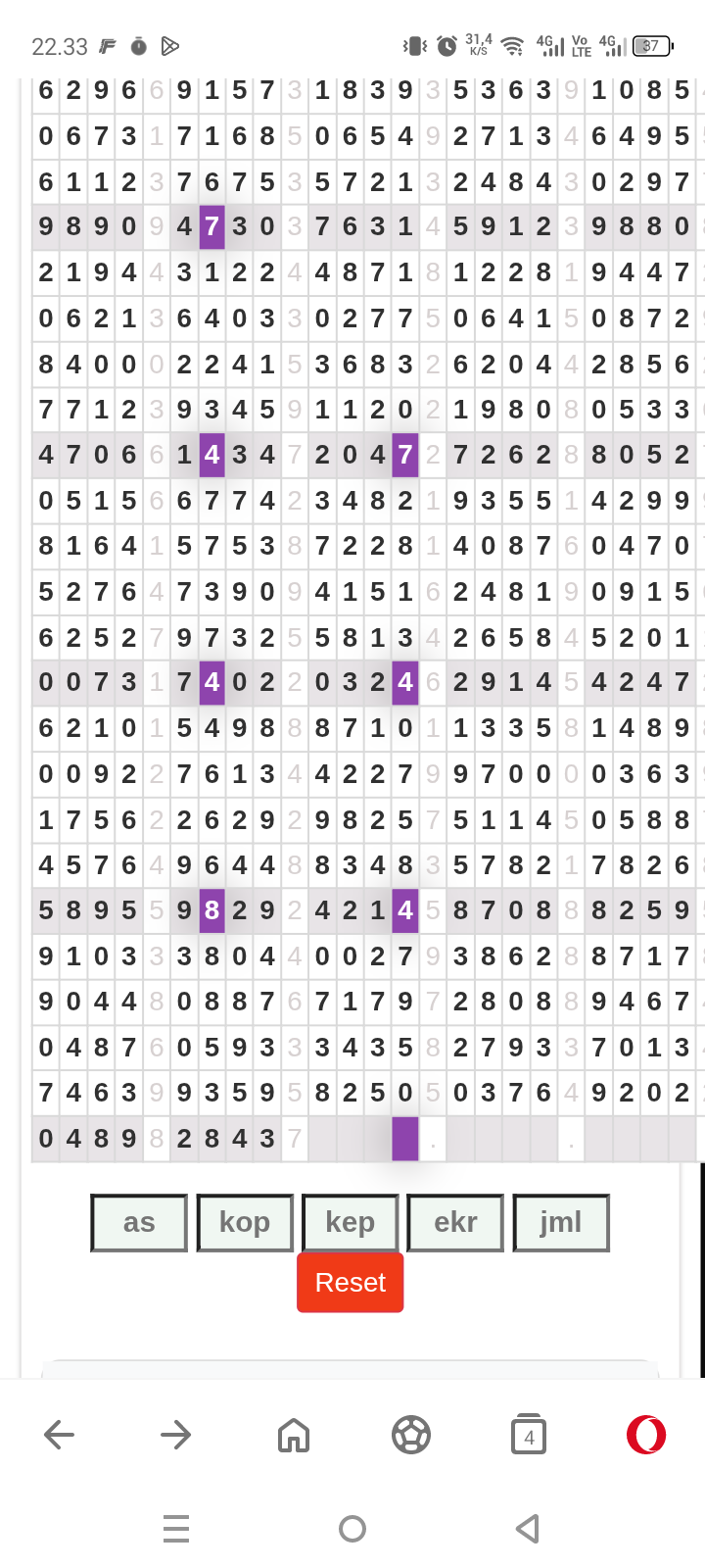 | Rumus Kontrol 4 berdasarkan kepala harian | 2345890 1236789 |