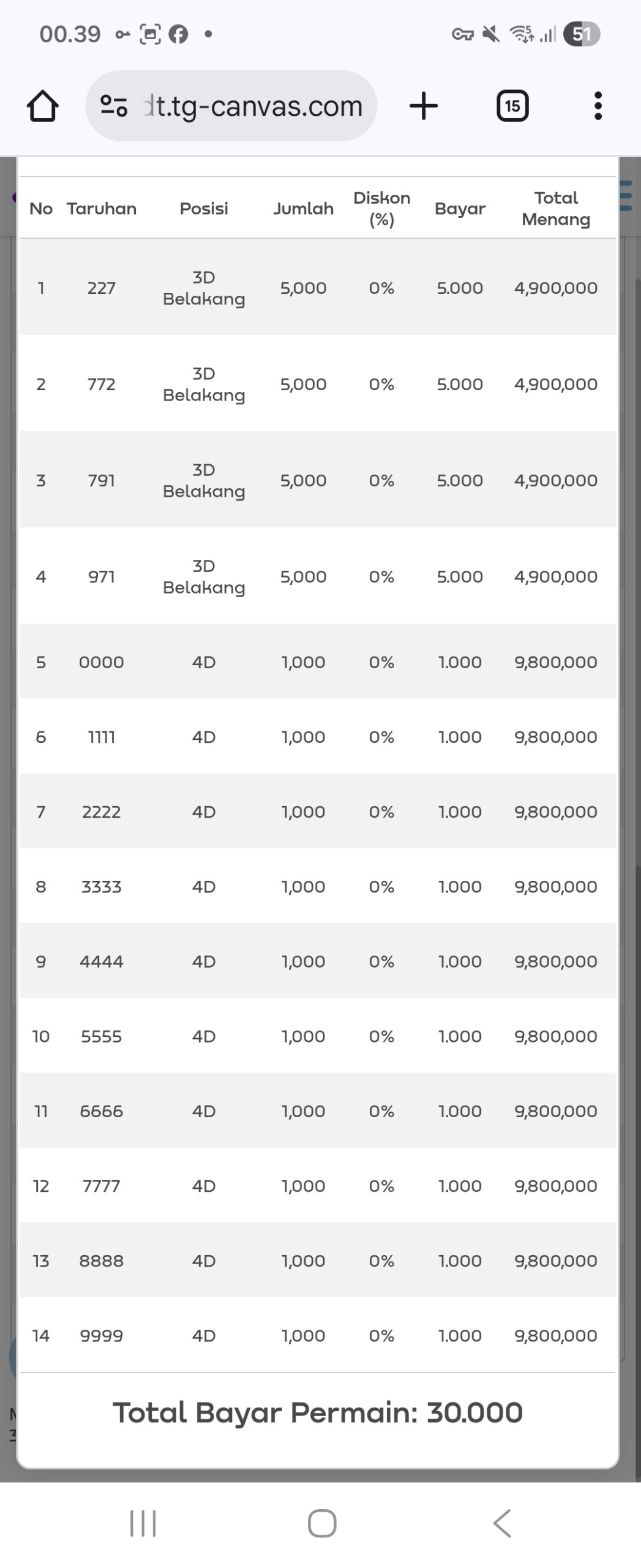 | Rumus Kontrol 4 berdasarkan kepala harian | 1456890 2345789 |
