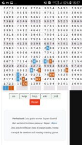 | Rumus Angka Mati berdasarkan kepala harian | 05 06 08 09 16 17 19 20 21 26 27 28 29 30 31 32 37 38 39 40 41 43 48 49 51 52 54 59 63 64 65 74 75 76 85 86 87 97 98 |