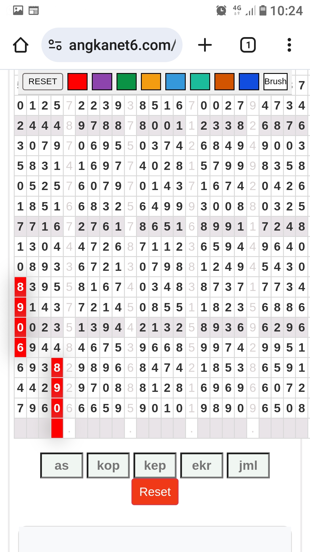 | Rumus Angka Mati berdasarkan kepala harian | 04 06 07 09 10 18 19 20 21 29 30 31 32 42 43 50 51 53 54 61 62 64 71 72 73 74 75 76 82 83 84 85 86 87 93 94 95 96 98 |