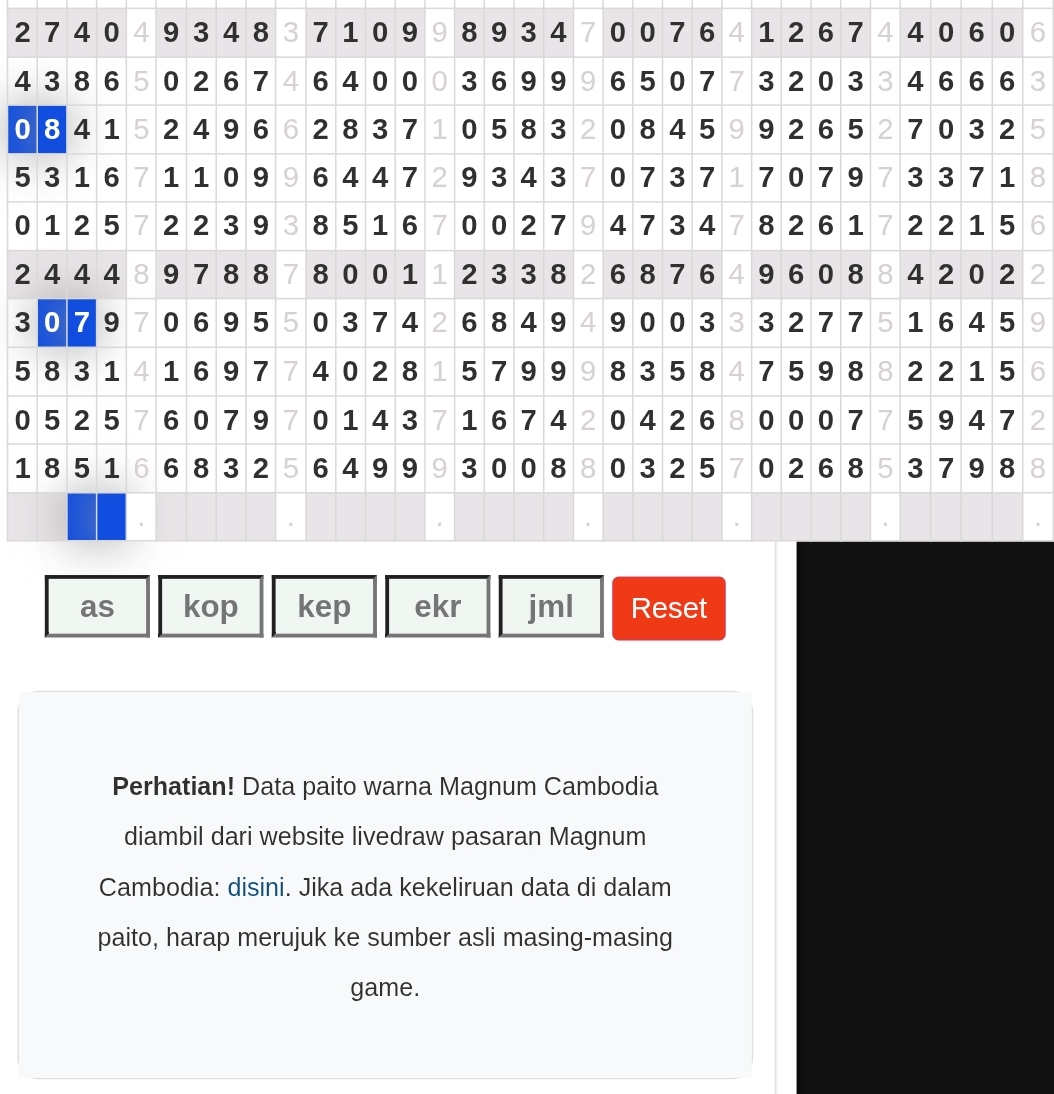 Prediksi Magnum Cambodia Kamis, 23-10-2025 | |