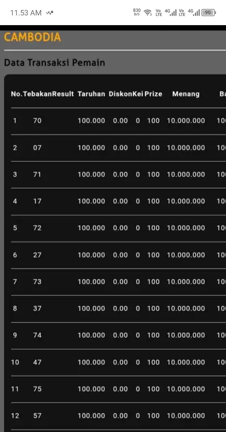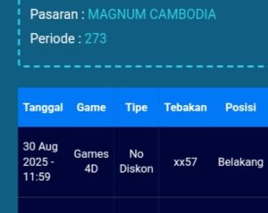 Prediksi Magnum Cambodia Kamis, 23-10-2025 Merupakan Prediksi Otomatis yang menggabungkan Metode Kalender Togel Dengan LN Generator yang akurasi prediksinya sudah kita ketahui bersama. Jadi harap Maklum Jika kadang meleset Prediksi Magnum Cambodia kita. Jadikan ini sebagai perbandingan saja dan tetap Utamakan karya sendiri