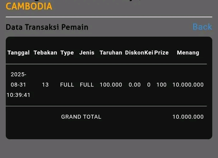 Magnum Cambodia, Minggu – 31 Agustus 2025