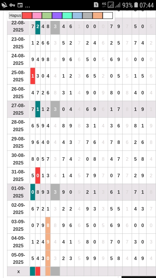 | Rumus Angka Mati berdasarkan kepala harian | 04 05 06 07 08 09 10 15 16 17 18 19 21 26 27 28 29 30 32 37 39 41 42 43 52 53 54 63 64 65 75 76 83 84 86 87 94 95 97 |