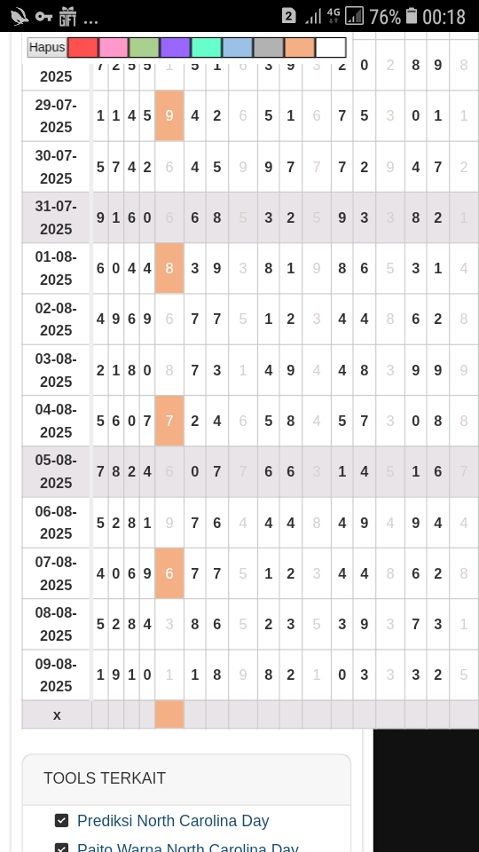 Prediksi North Carolina Day Jumat, 24-10-2025 | |