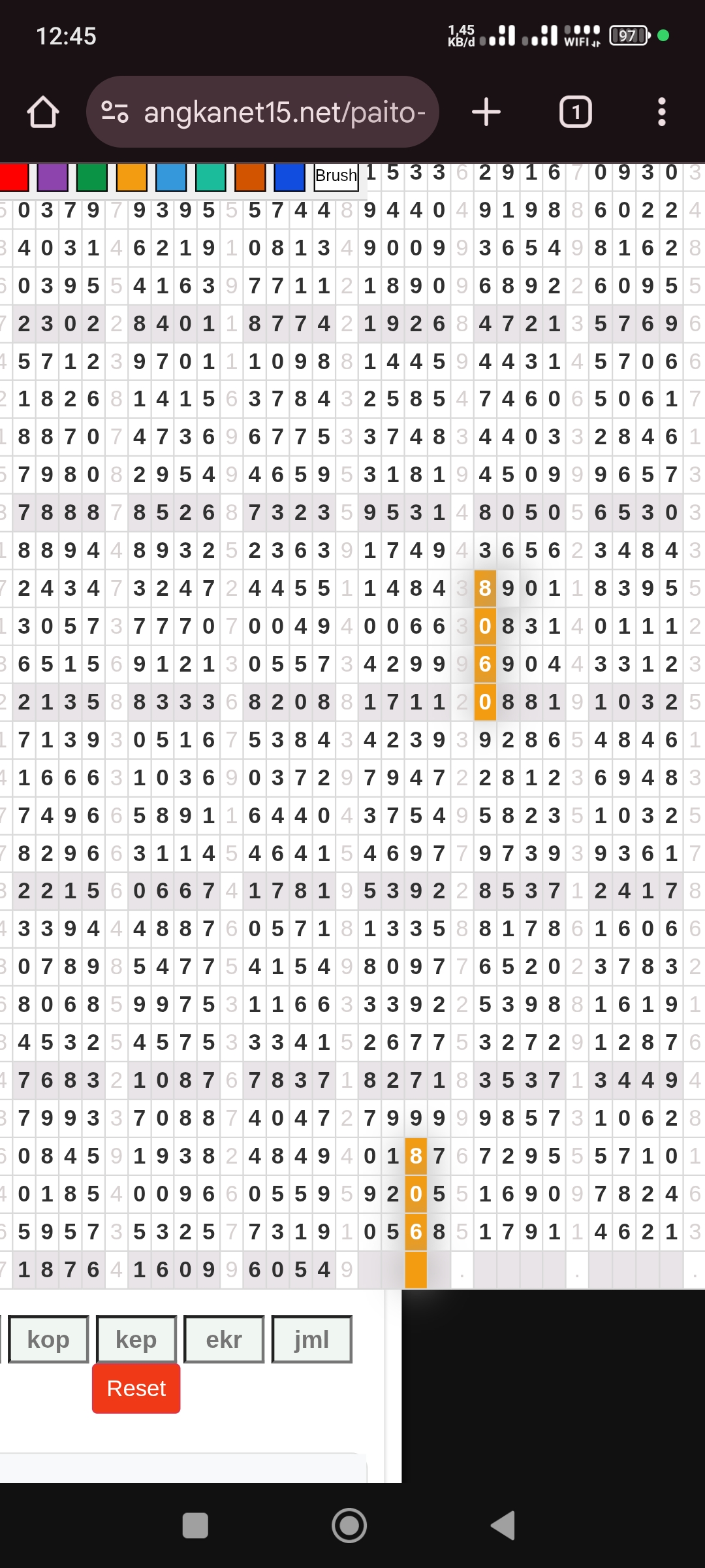 Rumus Angka Mati berdasarkan kepala harian | 05 06 08 09 16 17 19 20 21 26 27 28 29 30 31 32 37 38 39 40 41 43 48 49 51 52 54 59 63 64 65 74 75 76 85 86 87 97 98 |