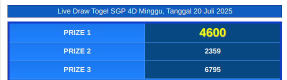 Prediksi Singapore Kamis, 23-10-2025 Merupakan Prediksi Otomatis yang menggabungkan Metode Kalender Togel Dengan LN Generator yang akurasi prediksinya sudah kita ketahui bersama. Jadi harap Maklum Jika kadang meleset Prediksi Singapore kita. Jadikan ini sebagai perbandingan saja dan tetap Utamakan karya sendiri