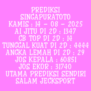 Prediksi Singapore Sabtu, 25-10-2025 Merupakan Prediksi Otomatis yang menggabungkan Metode Kalender Togel Dengan LN Generator yang akurasi prediksinya sudah kita ketahui bersama. Jadi harap Maklum Jika kadang meleset Prediksi Singapore kita. Jadikan ini sebagai perbandingan saja dan tetap Utamakan karya sendiri