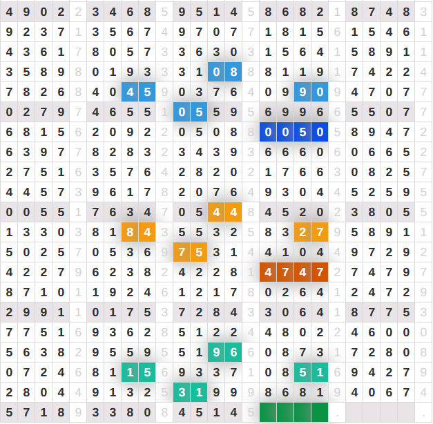 Rumus Angka Mati berdasarkan kepala harian | 05 06 08 10 15 16 17 18 19 20 21 26 27 28 29 30 32 37 38 39 40 41 43 48 52 53 54 63 64 65 74 75 76 86 87 94 95 97 98 |