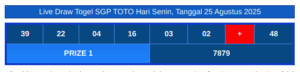 Prediksi Singapore Rabu, 22-10-2025 Merupakan Prediksi Otomatis yang menggabungkan Metode Kalender Togel Dengan LN Generator yang akurasi prediksinya sudah kita ketahui bersama. Jadi harap Maklum Jika kadang meleset Prediksi Singapore kita. Jadikan ini sebagai perbandingan saja dan tetap Utamakan karya sendiri