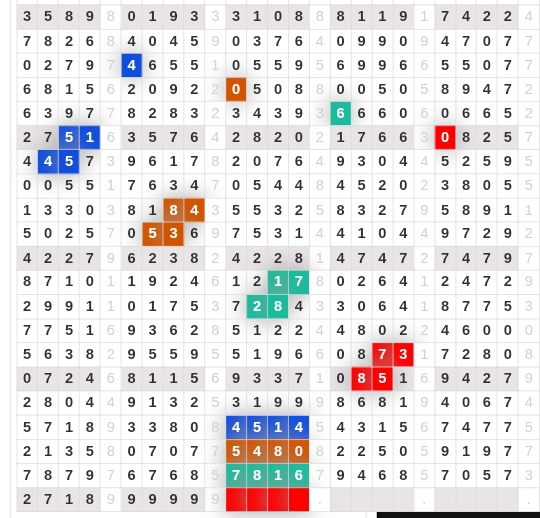 Rumus Angka Mati berdasarkan kepala harian | 05 06 08 10 15 16 17 18 19 20 21 26 27 28 29 30 32 37 38 39 40 41 43 48 52 53 54 63 64 65 74 75 76 86 87 94 95 97 98 |