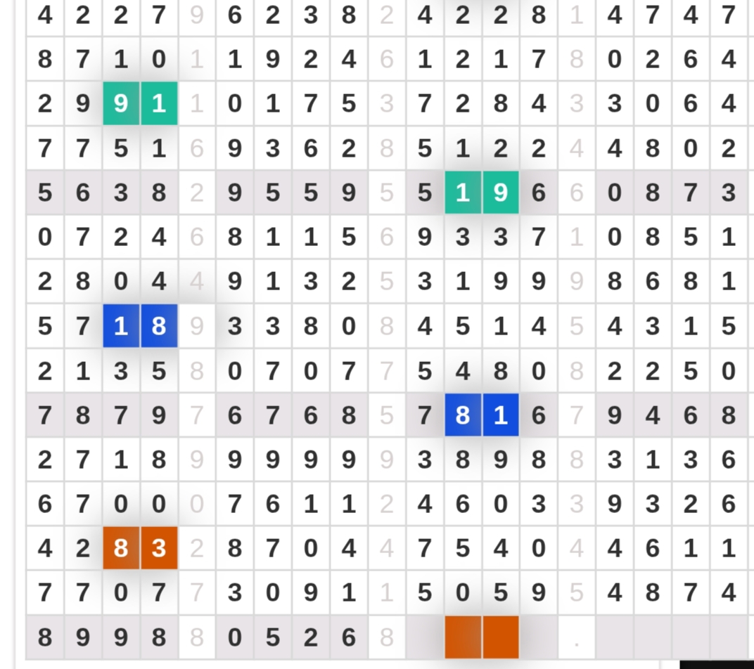 Rumus Angka Mati berdasarkan kepala harian | 04 05 06 07 09 10 15 17 18 20 21 29 30 31 32 41 42 43 53 54 61 62 64 65 72 73 75 82 83 84 85 86 87 93 94 95 96 97 98 |