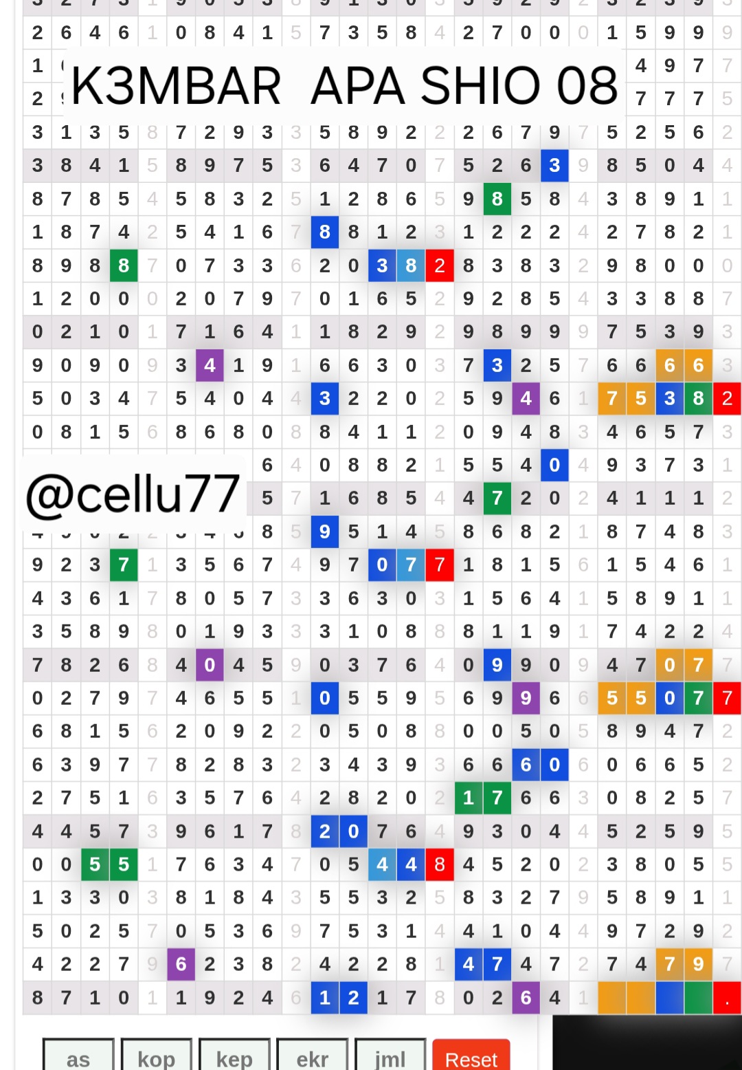 | Rumus Angka Mati berdasarkan kepala harian | 07 08 09 10 18 19 20 21 31 32 38 39 40 42 49 50 51 52 53 54 59 60 61 62 63 64 65 71 72 73 74 76 82 84 85 87 96 97 98 |