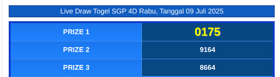 Prediksi Singapore Kamis, 23-10-2025 Merupakan Prediksi Otomatis yang menggabungkan Metode Kalender Togel Dengan LN Generator yang akurasi prediksinya sudah kita ketahui bersama. Jadi harap Maklum Jika kadang meleset Prediksi Singapore kita. Jadikan ini sebagai perbandingan saja dan tetap Utamakan karya sendiri