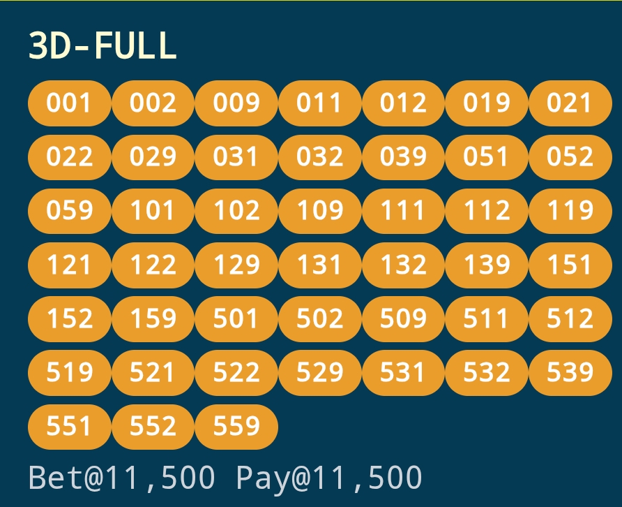 Rumus Angka Mati berdasarkan kepala harian | 05 06 08 09 16 17 19 20 21 26 27 28 29 30 31 32 37 38 39 40 41 43 48 49 51 52 54 59 63 64 65 74 75 76 85 86 87 97 98 |