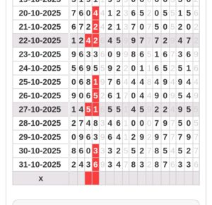 | Rumus Angka Mati berdasarkan kepala harian | 07 08 09 10 18 19 20 21 29 31 32 40 42 43 49 50 51 53 60 61 62 63 64 65 71 72 73 74 75 76 82 83 84 85 87 93 95 96 98 |