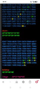Rumus Angka Mati berdasarkan kepala harian | 07 08 09 10 19 20 21 27 28 31 38 39 40 41 42 43 48 49 50 51 52 53 54 59 60 61 62 63 65 71 73 74 76 85 86 87 96 97 98 |