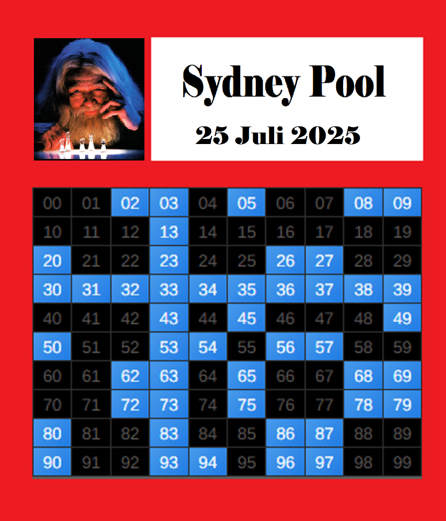 Prediksi Sydneypools Jumat, 24-10-2025 Merupakan Prediksi Otomatis yang menggabungkan Metode Kalender Togel Dengan LN Generator yang akurasi prediksinya sudah kita ketahui bersama. Jadi harap Maklum Jika kadang meleset Prediksi Sydneypools kita. Jadikan ini sebagai perbandingan saja dan tetap Utamakan karya sendiri