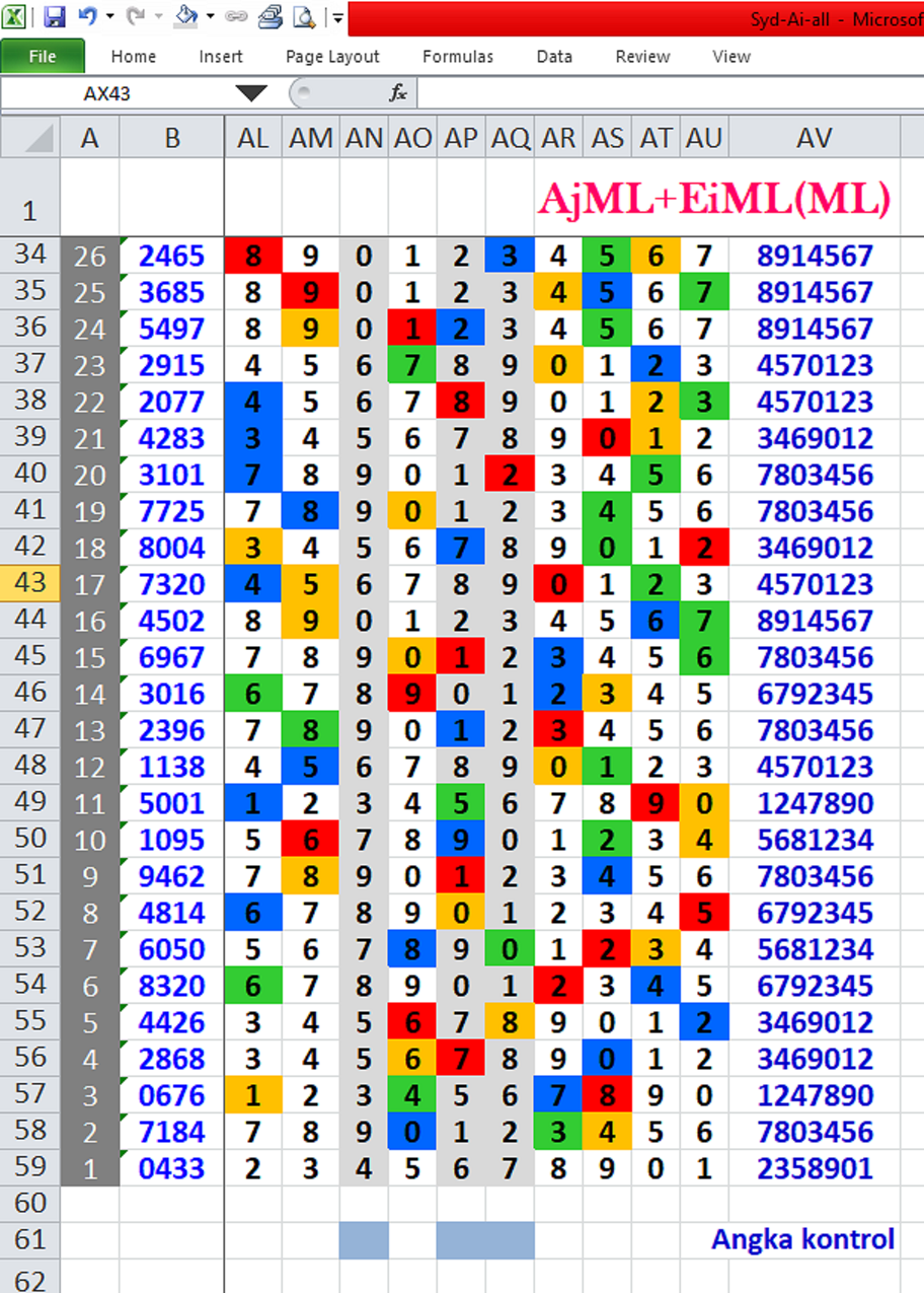 | Rumus Kontrol 1 berdasarkan As harian | 1567890 2345678 1234590 0124589 |