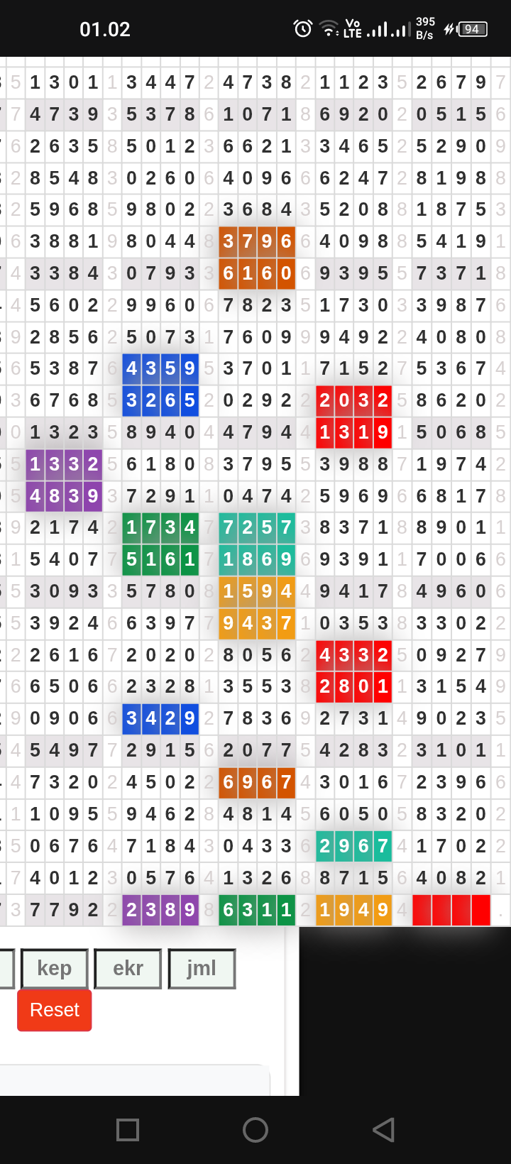 | Rumus Angka Mati berdasarkan kepala harian | 07 08 09 10 19 20 21 27 28 31 38 39 40 41 42 43 48 49 50 51 52 53 54 59 60 61 62 63 65 71 73 74 76 85 86 87 96 97 98 |