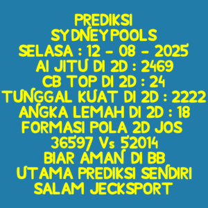 Prediksi Sydneypools Kamis, 23-10-2025 Merupakan Prediksi Otomatis yang menggabungkan Metode Kalender Togel Dengan LN Generator yang akurasi prediksinya sudah kita ketahui bersama. Jadi harap Maklum Jika kadang meleset Prediksi Sydneypools kita. Jadikan ini sebagai perbandingan saja dan tetap Utamakan karya sendiri