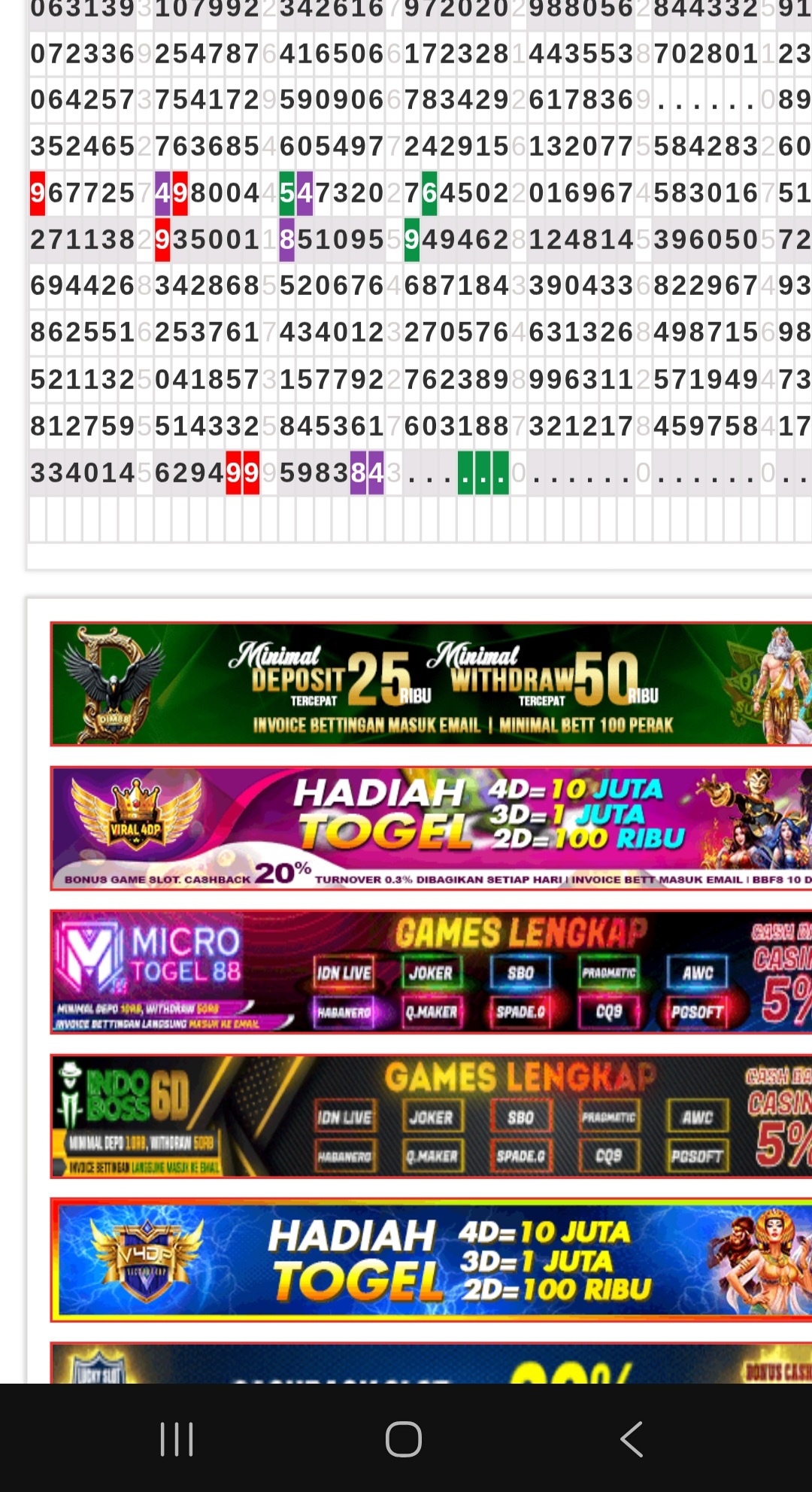 Rumus Angka Mati berdasarkan kepala harian | 05 06 08 09 16 17 19 20 21 26 27 28 29 30 31 32 37 38 39 40 41 43 48 49 51 52 54 59 63 64 65 74 75 76 85 86 87 97 98 |
