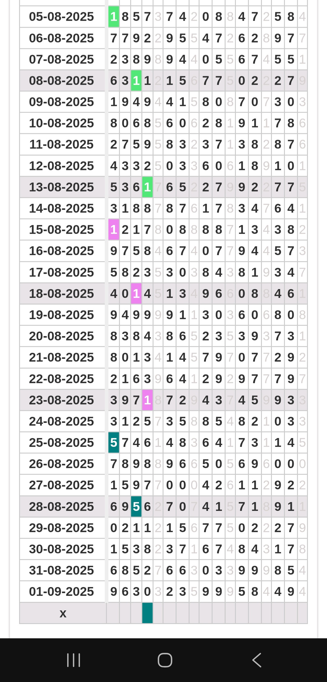 | Rumus Angka Mati berdasarkan kepala harian | 07 08 09 10 18 19 20 21 31 32 38 39 40 42 49 50 51 52 53 54 59 60 61 62 63 64 65 71 72 73 74 76 82 84 85 87 96 97 98 |