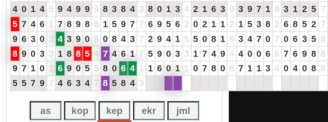 Rumus Angka Mati berdasarkan kepala harian | 08 09 10 16 17 19 20 27 28 30 31 32 37 38 39 40 41 42 43 48 49 50 51 52 54 59 60 62 63 65 74 75 76 85 86 87 96 97 98 |