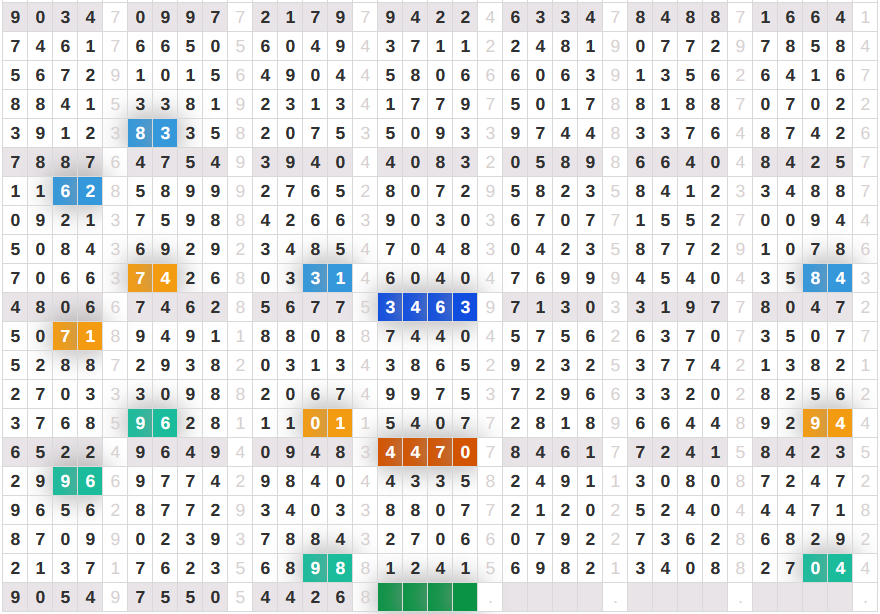 Rumus Angka Mati berdasarkan kepala harian | 07 08 09 10 18 19 20 21 31 32 38 39 40 42 49 50 51 52 53 54 59 60 61 62 63 64 65 71 72 73 74 76 82 84 85 87 96 97 98 |
