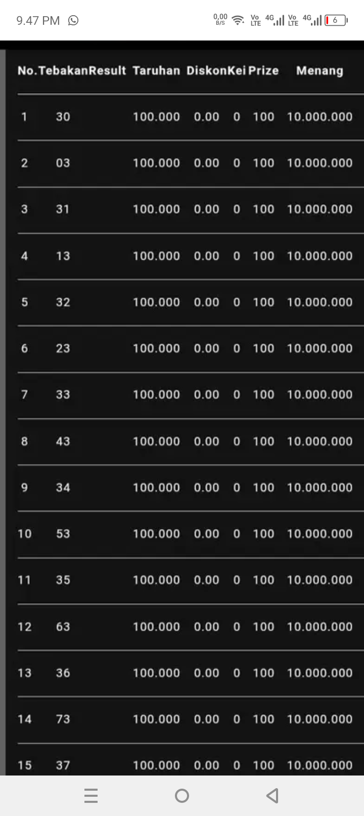 Rumus Angka Mati berdasarkan kepala harian | 05 06 08 10 15 16 17 18 19 20 21 26 27 28 29 30 32 37 38 39 40 41 43 48 52 53 54 63 64 65 74 75 76 86 87 94 95 97 98 |